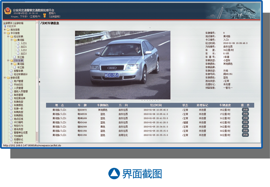 DA-931后平臺數(shù)據(jù)管理系統(tǒng)采用B/S結(jié)構(gòu),通過WEB方式登陸訪問,采用一般瀏覽器作為客戶端,無需進行客戶端維護,支持通過網(wǎng)絡進行遠程訪問。系統(tǒng)以性能穩(wěn)定、人性化為設計原則,系統(tǒng)人機界面和諧,操作簡單快捷,大大提高對數(shù)據(jù)的處理效率。作為開放、統(tǒng)一的的用戶平臺,DA-931后平臺數(shù)據(jù)管理系統(tǒng)支持公路車輛智能監(jiān)測記錄系統(tǒng)(卡口系統(tǒng))、闖紅燈自動記錄系統(tǒng)、區(qū)間測速系統(tǒng)等系統(tǒng)。公路車輛智能監(jiān)測記錄系統(tǒng)(卡口系統(tǒng))過往車輛數(shù)據(jù)管理模塊對每個卡口點傳回的車輛信息數(shù)據(jù)進行統(tǒng)一存儲,并提供過往車輛信息的查詢調(diào)看、車流量統(tǒng)計、嫌疑車輛的布控等服務。闖紅燈自動記錄系統(tǒng)違法車輛數(shù)據(jù)管理模塊負責對每個前段路口傳回的違法照片進行分類入庫,并通過人工 篩選有效違法證據(jù)照片進行處理打印罰單。系統(tǒng)也提供違法數(shù)據(jù)的查詢和違法流量的統(tǒng)計。區(qū)間測速系統(tǒng)過往車輛及違法車輛數(shù)據(jù)管理模塊除了對前端測速點過往車輛信息的記錄,還提供對超速數(shù)據(jù)的自動分離和存儲,通過人工確認有效違法數(shù)據(jù)進行處理打印罰單。系統(tǒng)也提供違法數(shù)據(jù)的查詢和違法流量的統(tǒng)計。